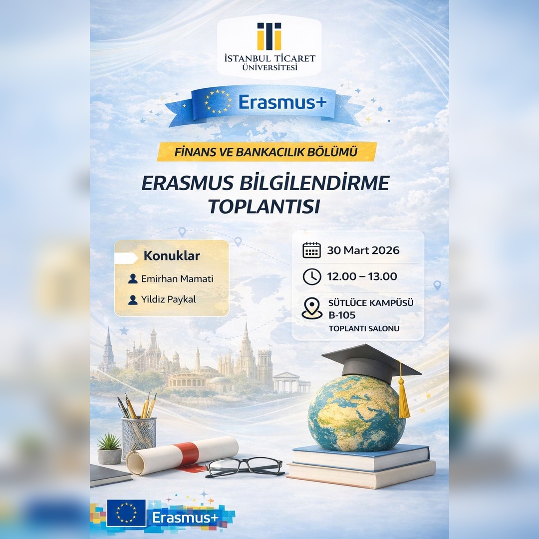 Finans ve Bankacılık Bölümü tarafından düzenlenen Erasmus Bilgilendirme Toplantısı, öğrencilerimizi Erasmus+ programı hakkında bilgilendirmek amacıyla gerçekleştirilecektir. Etkinlik kapsamında programa ilişkin genel çerçeve, başvuru süreci, akademik ve idari aşamalar ile öğrencilerin dikkat etmesi gereken temel hususlar ele alınacaktır. Erasmus sürecine ilgi duyan tüm öğrencilerimiz toplantıya davetlidir.