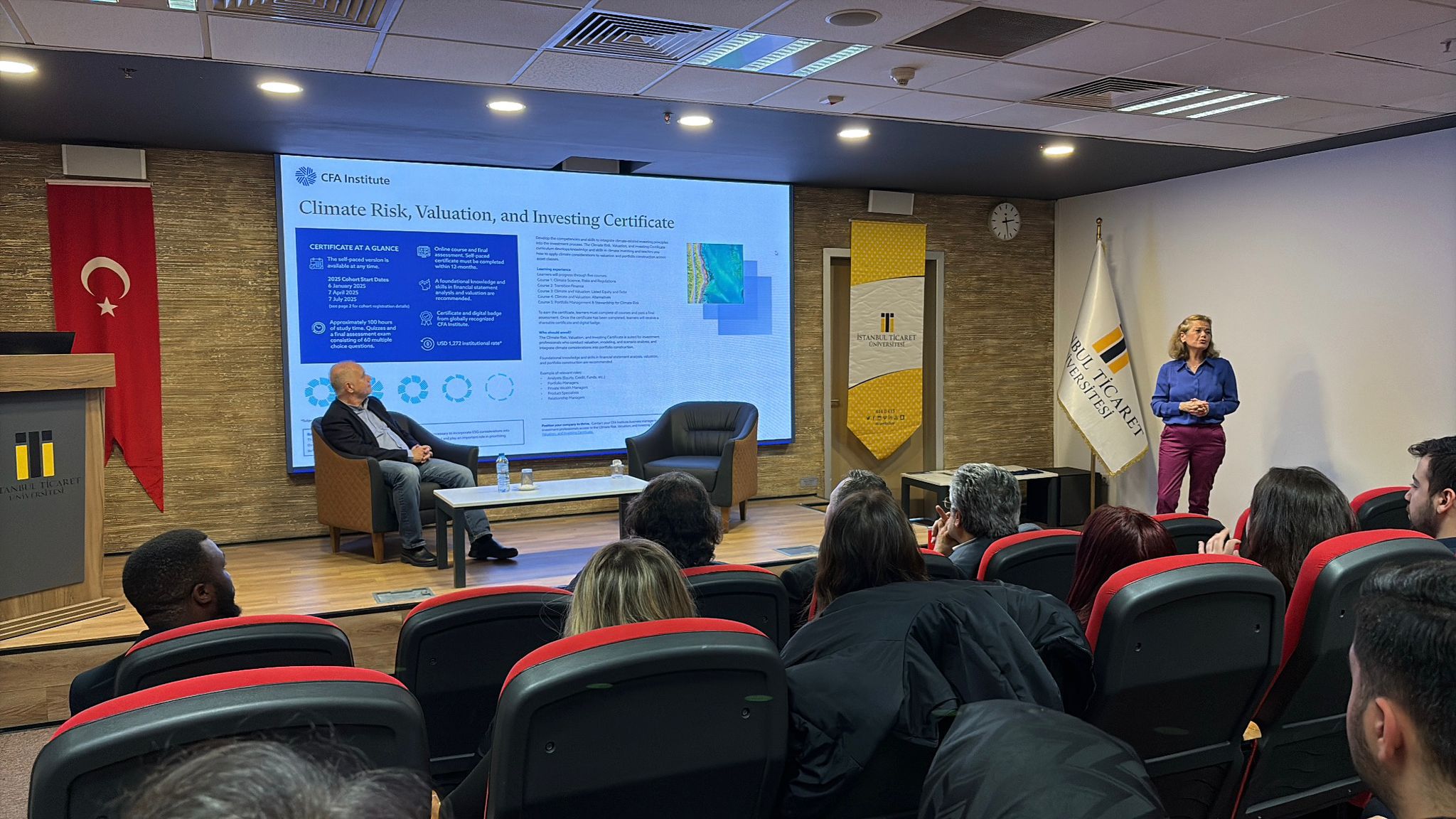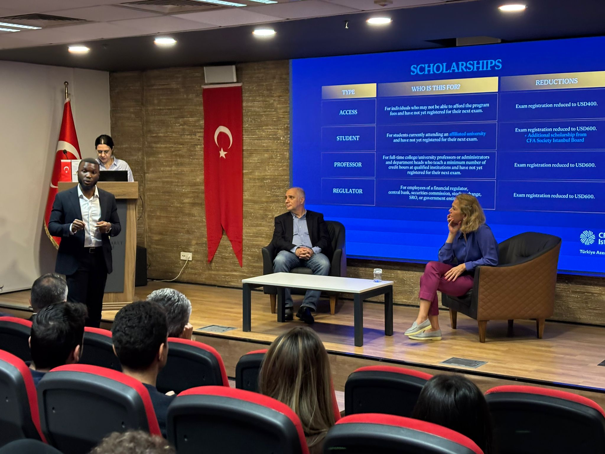 Ms. İlke provided detailed information about the importance of the CFA exams, their benefits for students, and the structure of the exam. Detailed information was also provided to our students about the CFA Research Challenge.