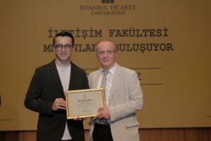 Görsel İletişim Tasarımı Bölümü mezunu ve TRT Spor Haber Müdürü Tuna Akdemir de konuşmasında, üniversite yıllarındaki hedefinin spor muhabirliği olduğunu ve bu hedef doğrultusunda ilerleyerek sektörde görev aldığını belirtti. İstanbul Ticaret Üniversitesi’nde aldığı uygulamalı eğitimlerin ve staj imkânlarının kendisini sektöre hazırladığını ifade eden Akdemir, özellikle stüdyo ortamında ve İtalik Dergisi’nde kazandığı deneyimlerin meslek hayatında önemli fırsatlar oluşturduğunu vurguladı. Üniversitenin sektöre yakın eğitim anlayışının öğrencilere büyük avantaj sağladığını dile getiren Akdemir, iletişim fakültesi mezunlarının mezuniyet öncesinde mutlaka alanlarında deneyim kazanmalarının iş hayatına geçişte önemli bir adım olacağını ifade etti.