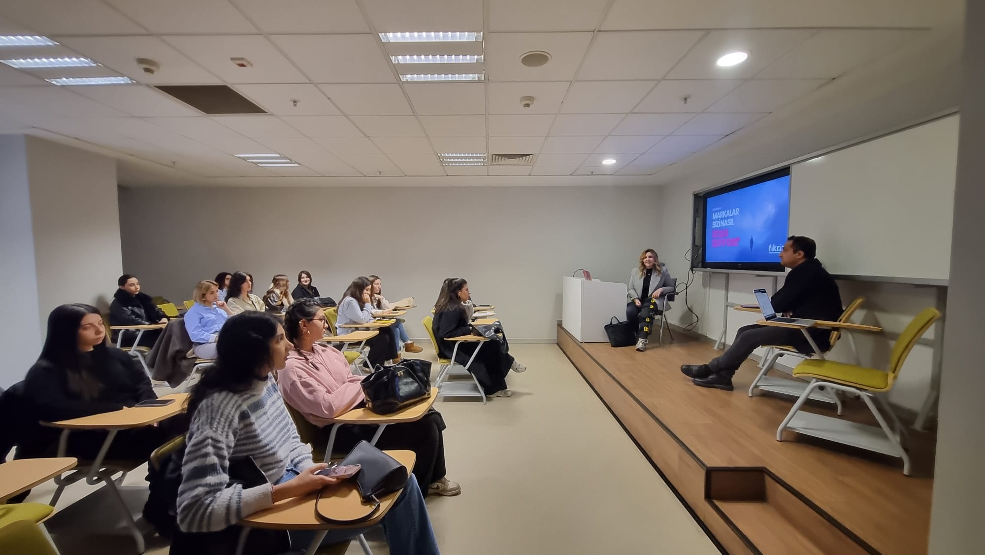 Öğrencilerin aktif katılım gösterdiği etkinlikte, marka iletişimi, algı yönetimi ve ikna süreçlerine dair önemli bilgiler interaktif bir şekilde aktarıldı. Etkinlik sonunda öğrenciler, markaların yaratım ve hedef kitleyle buluşma süreçleri ile ilgili gerçek örnekler üzerinden sektörel bilgiler hakkında önemli kazanımlar elde etti. Etkinlik, öğrencilerin sorularının cevaplanmasıyla sona erdi.