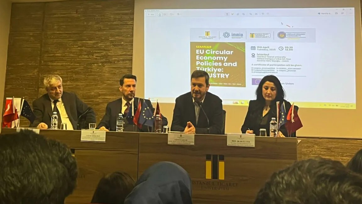 Üniversitemiz ev sahipliğinde gerçekleştirilen “EU Circular Economy Policies and Türkiye: Industry” başlıklı seminer, Jean Monnet Chair for EU’s Circular Economy Policies and Sustainability (CESPEU) ve İstanbul Maden ve Metaller İhracatçı Birlikleri (İMMİB) iş birliğiyle düzenlendi. Etkinlik, Sütlüce Yerleşkesi E502 numaralı salonda gerçekleştirildi. Seminere öğrenciler, akademisyenler ve farklı sektörlerden temsilcilerden oluşan yaklaşık 130 kişi katılım gösterdi.