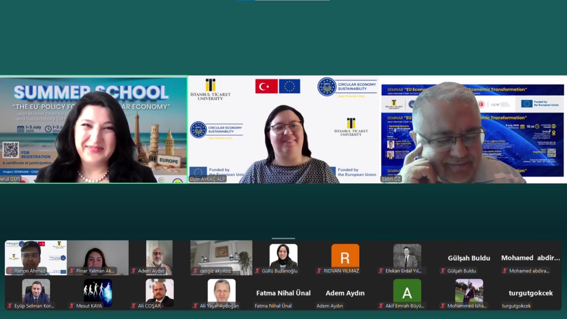 Jean Monnet Chair for EU’s Circular Economy Policies and Sustainability (CESPEU) tarafından düzenlenen Summer School programı, 1–3 Temmuz 2025 tarihleri arasında İstanbul Ticaret Üniversitesi ev sahipliğinde yoğun katılım ve yüksek akademik ilgiyle gerçekleştirildi. Döngüsel ekonomi ve sürdürülebilirlik teması etrafında şekillenen programda; akademi, kamu ve sektör temsilcileri ile lisansüstü öğrenciler bir araya gelerek Avrupa Birliği politikaları, güncel uygulamalar ve akademik araştırma çıktıları çok boyutlu bir perspektifle ele alındı.