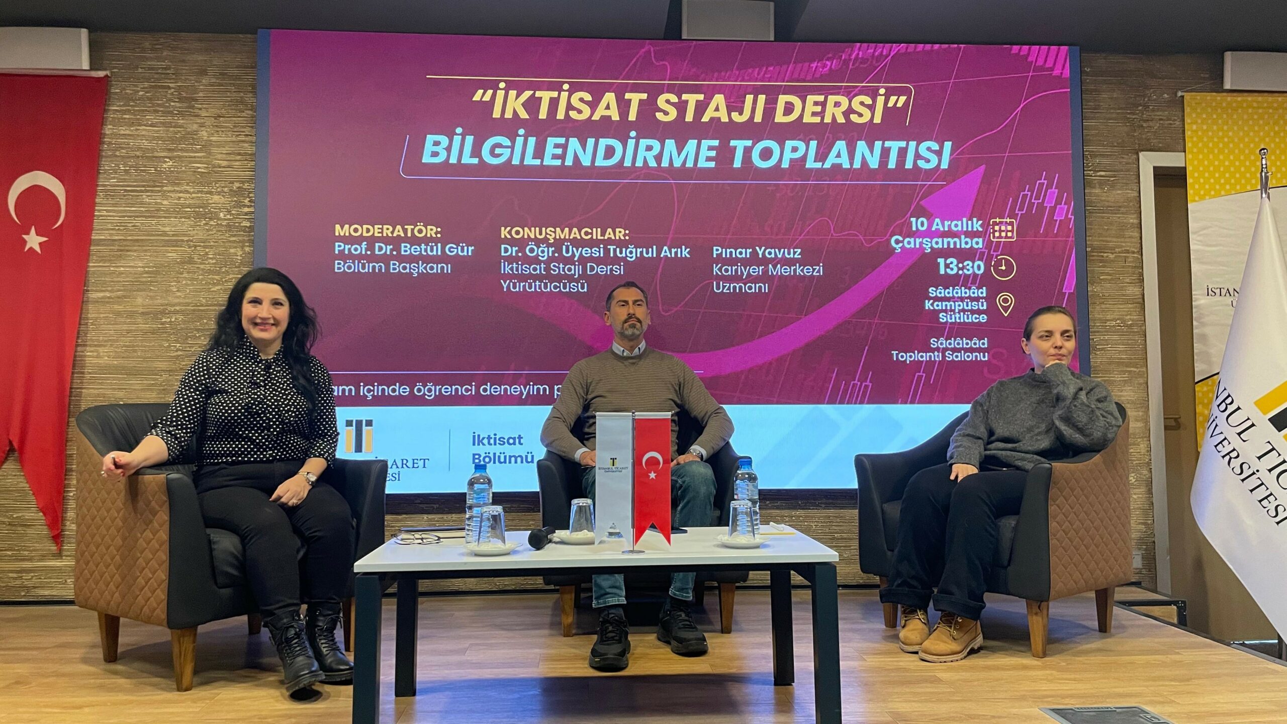İktisat Bölümü tarafından bölüm öğrencilerinin staj süreçleri hakkında bilgilendirilmesi ve kariyer planlamalarının desteklenmesi amacıyla düzenlenen İktisat Stajı Dersi Bilgilendirme Toplantısı, 10 Aralık 2025 tarihinde Sâdâbâd Kampüsü Sâdâbâd Toplantı Salonu’nda gerçekleştirildi.