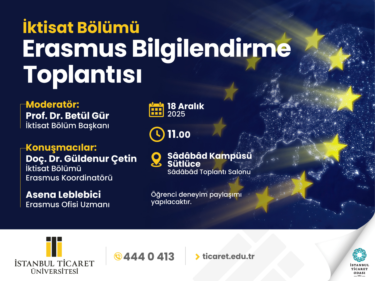 Etkinliğe, İktisat Bölümü Erasmus Koordinatörü Doç. Dr. Güldenur ÇETİN, İktisat Bölüm Başkanı Prof. Dr. Betül GÜR ve Erasmus Uzmanı Asena LEBLEBİCİ katıldı. Toplantıda Erasmus programının başvuru süreçleri, değerlendirme kriterleri ve dikkat edilmesi gereken hususlar hakkında katılımcılara kapsamlı bilgiler sunuldu.