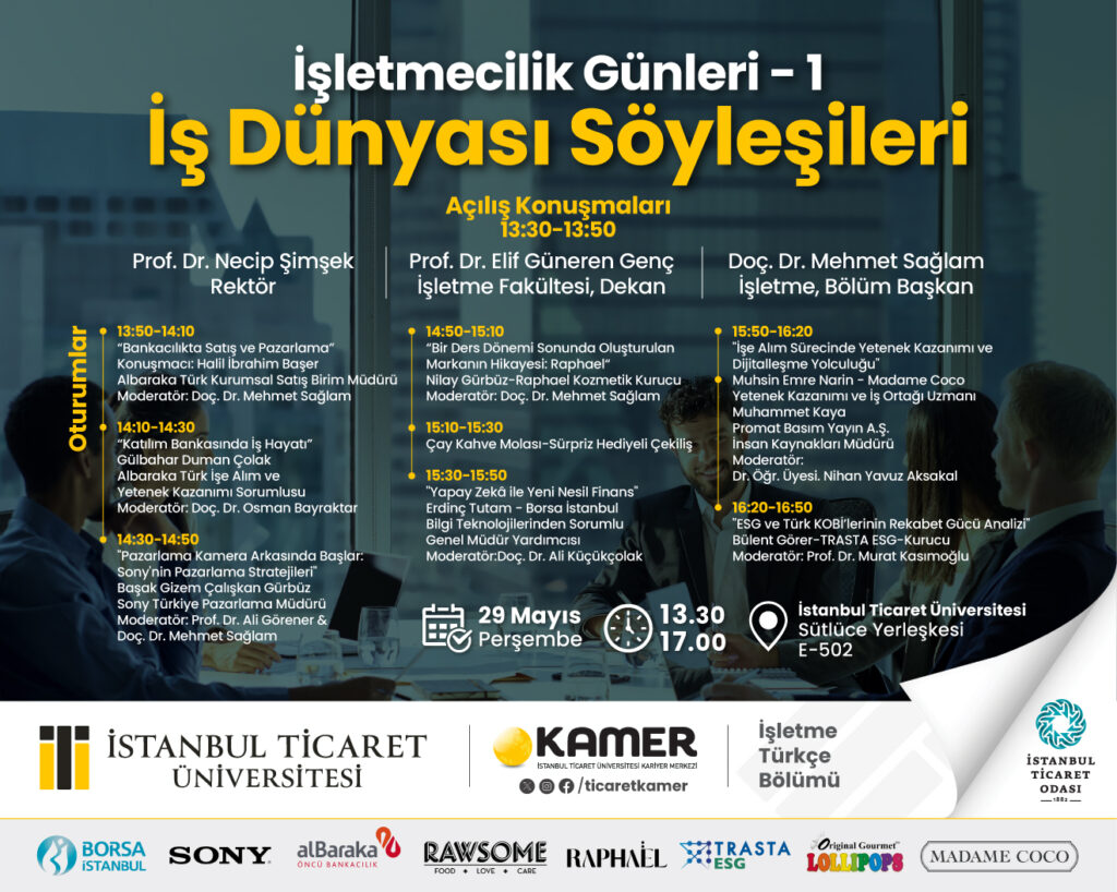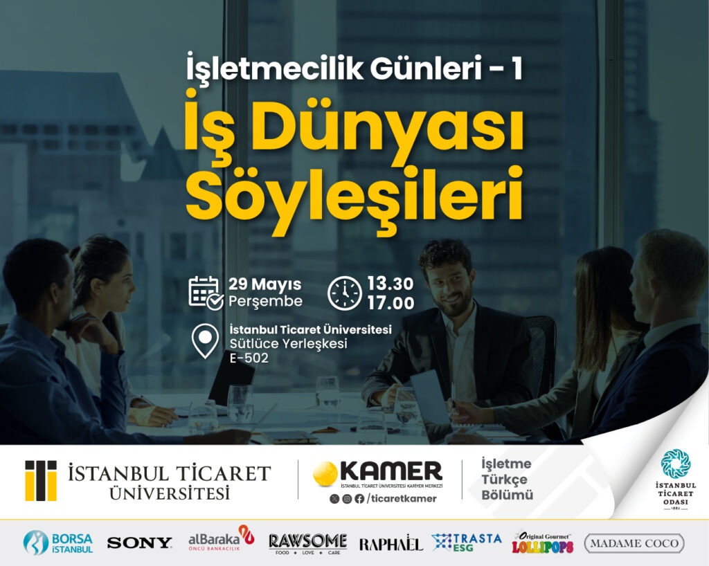 İstanbul Ticaret Üniversitesi İşletme Bölümü tarafından düzenlenen “İşletmecilik Günleri – 1: İş Dünyası Söyleşileri” etkinliği, 29 Mayıs 2025 tarihinde Sütlüce Yerleşkesi’nde gerçekleştirildi.