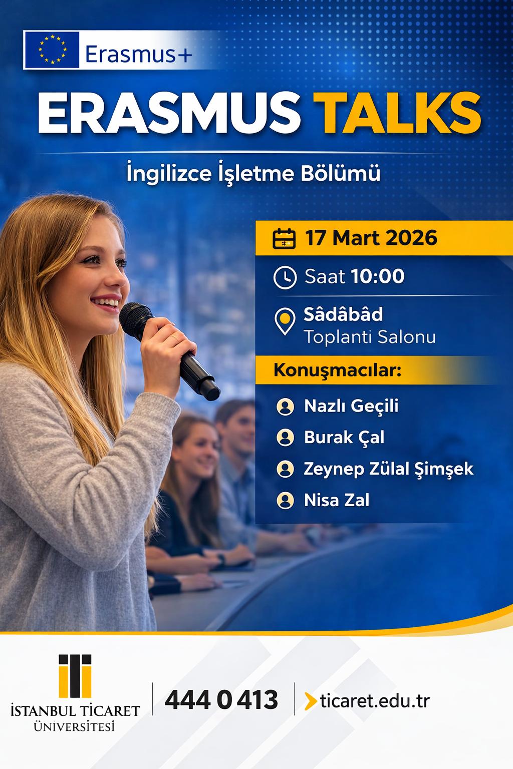 İşletme (İngilize) Bölümü tarafından 17 Mart 2026 tarihinde saat 10.00’da Sadabad Toplantı Salonunda Erasmus Talks programı gerçekleştirilecektir.
