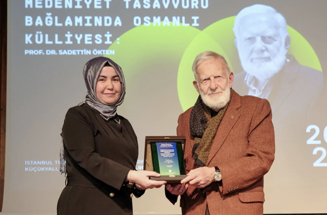 Modern dönemde gökdelenler, alışveriş merkezleri ve büyük ölçekli yapılar arasında sıkışan insanın çoğu zaman nesneleştiğine dikkat çeken Prof. Dr. Ökten, Osmanlı külliyesinde ise insanın merkeze alındığını ve mimarinin insanı ezmeyen, aksine ona yön veren bir ölçü duygusuyla şekillendiğini anlattı. Prof. Dr. Sadettin Ökten, geçmişte inşa edilen bu yapıların bugüne sadece nostaljik birer hatıra olarak değil, insan ölçeğini ve hayat bütünlüğünü hatırlatan önemli örnekler olarak taşındığını vurguladı.