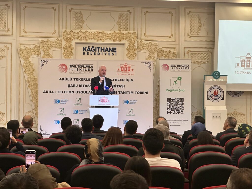 İstanbul’da engelli bireylerin kentsel yaşama erişimini kolaylaştırmayı hedefleyen “Engelsiz Şarj” projesi tanıtıldı. İstanbul Valiliği, Kağıthane Belediyesi ve Açık Veri ve Teknoloji Derneği iş birliğiyle, İçişleri Bakanlığı Sivil Toplumla İlişkiler Genel Müdürlüğü’nün destekleriyle hayata geçirilen proje, akülü tekerlekli sandalye kullanıcılarına yönelik önemli bir ihtiyaca çözüm sunuyor.
