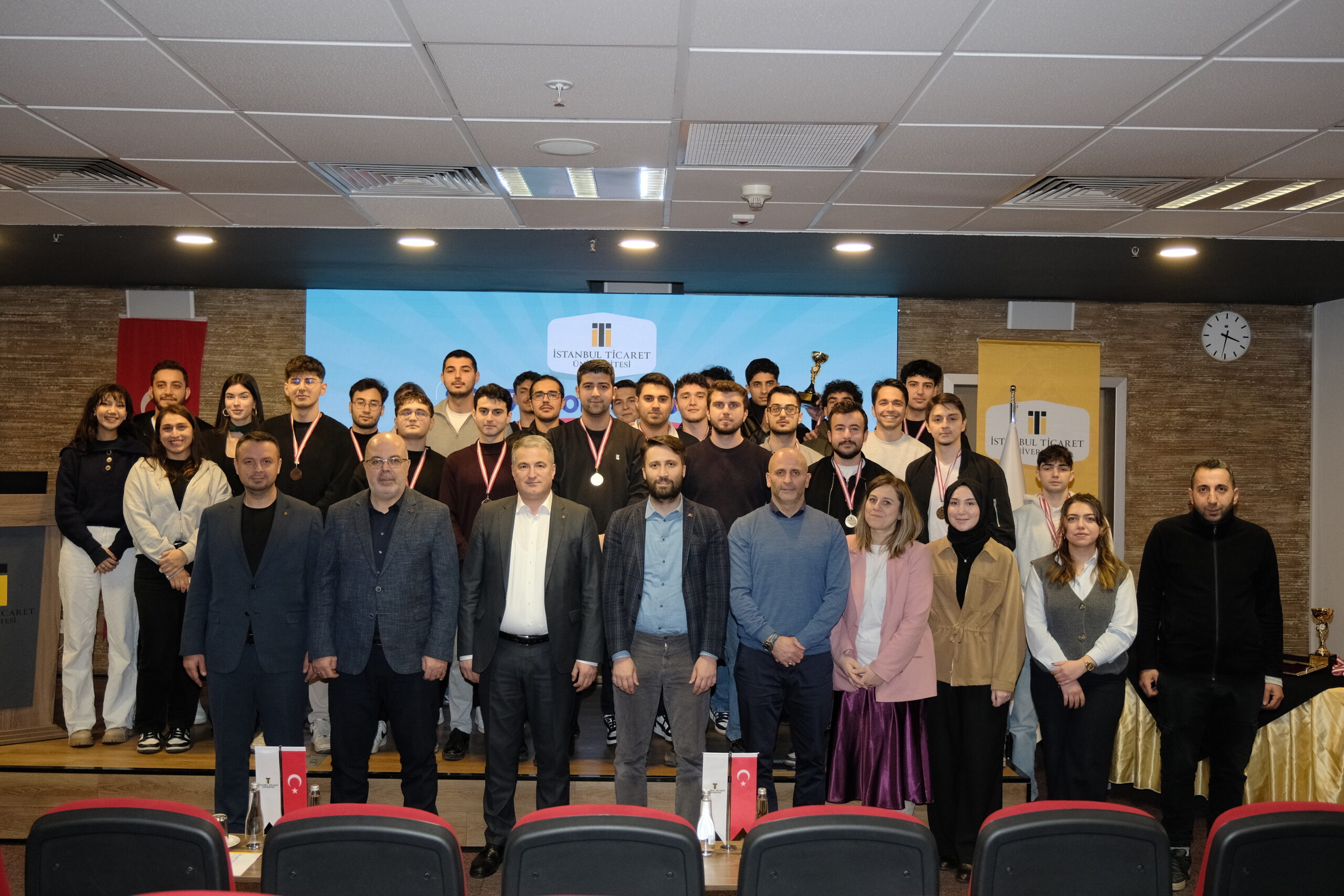 İstanbul Ticaret Üniversitesi Sağlık Kültür ve Spor Daire Başkanlığı tarafından geleneksel hale getirilen 2025–2026 Güz Dönemi Spor Turnuvası, düzenlenen ödül töreniyle sona erdi. Sâdâbât Kampüsü Sütlüce Sâdâbât Toplantı salonunda düzenlenen törene Rektörümüz Prof. Dr. Necip Şimşek, Rektör Yardımcımız Prof. Dr. Hanifi Parlar, Sağlık Kültür ve Spor Daire Başkanı Kaan Fidan ile çok sayıda öğrenci katıldı.
