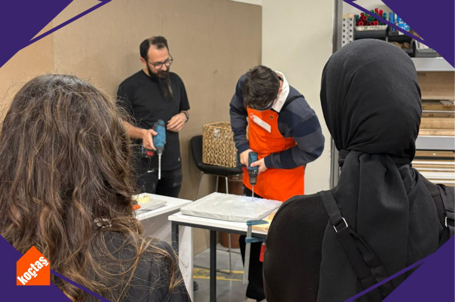 Ziyaretin ikinci bölümünde ise Viaport AVM’de yer alan Koçtaş mağazası gezildi. Öğrenciler, mal kabulden kasa işlemlerine kadar mağaza süreçlerini uygulamalı olarak gözlemledi. Ardından Koçtaş Atölye ve Gelişim Akademisi’nde boya, elektrik ve seramik atölyelerine katılarak teknik eğitimler aldılar.