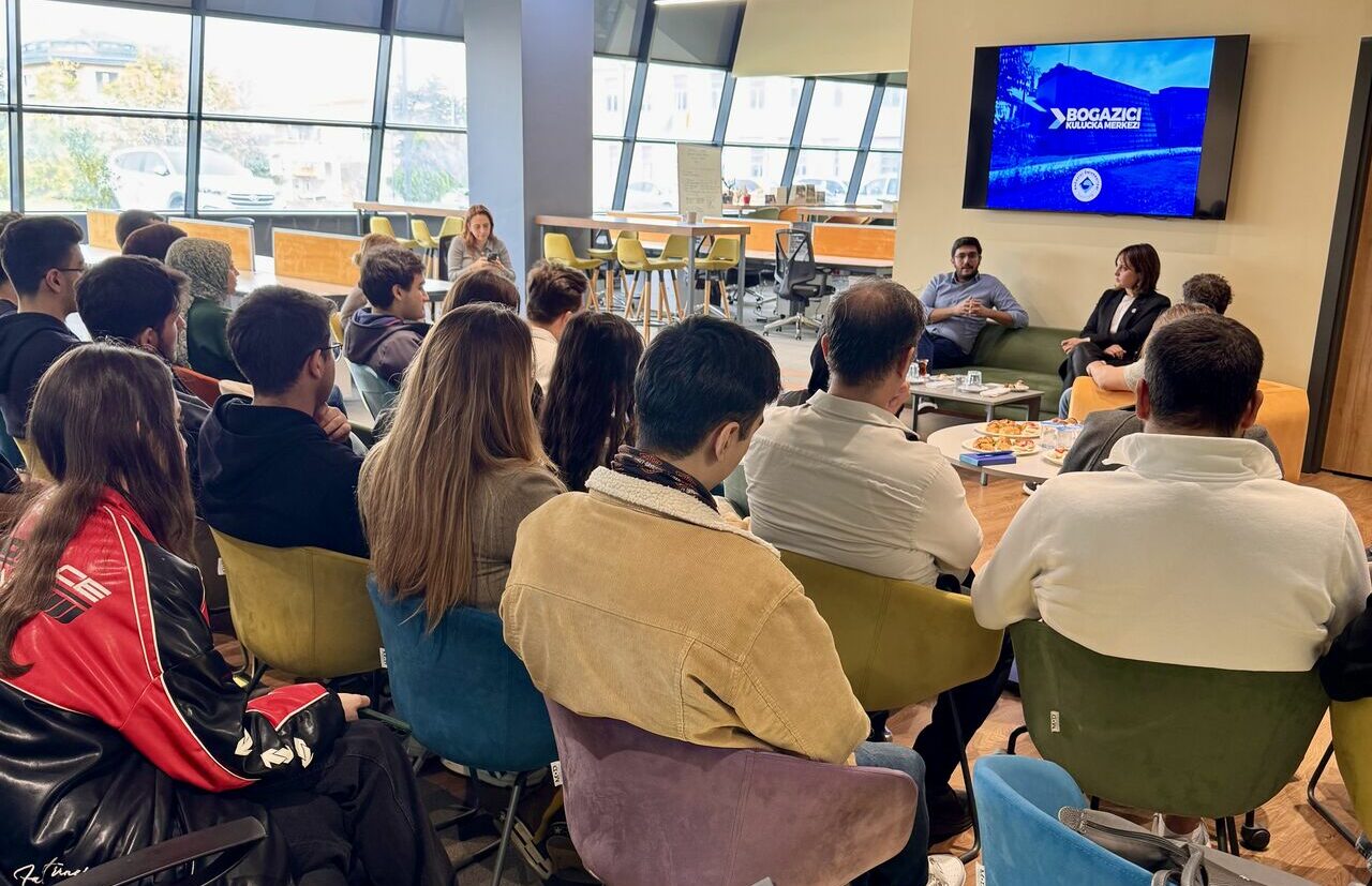 In the first stage of the technical visit, Türkü Suna Çendeoğlu, Manager of the Incubation Center, delivered a comprehensive presentation and Q&A session covering the structure of Boğaziçi Technopark, its fields of activity, the support it provides to entrepreneurs, and its role within the technology ecosystem. Afterwards, students participated in an in-house introductory tour where they had the opportunity to observe the different units and working areas of the Technopark on site.